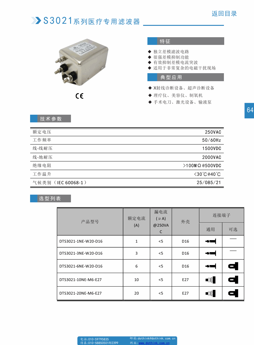 DTS3021系列醫用電源濾波器