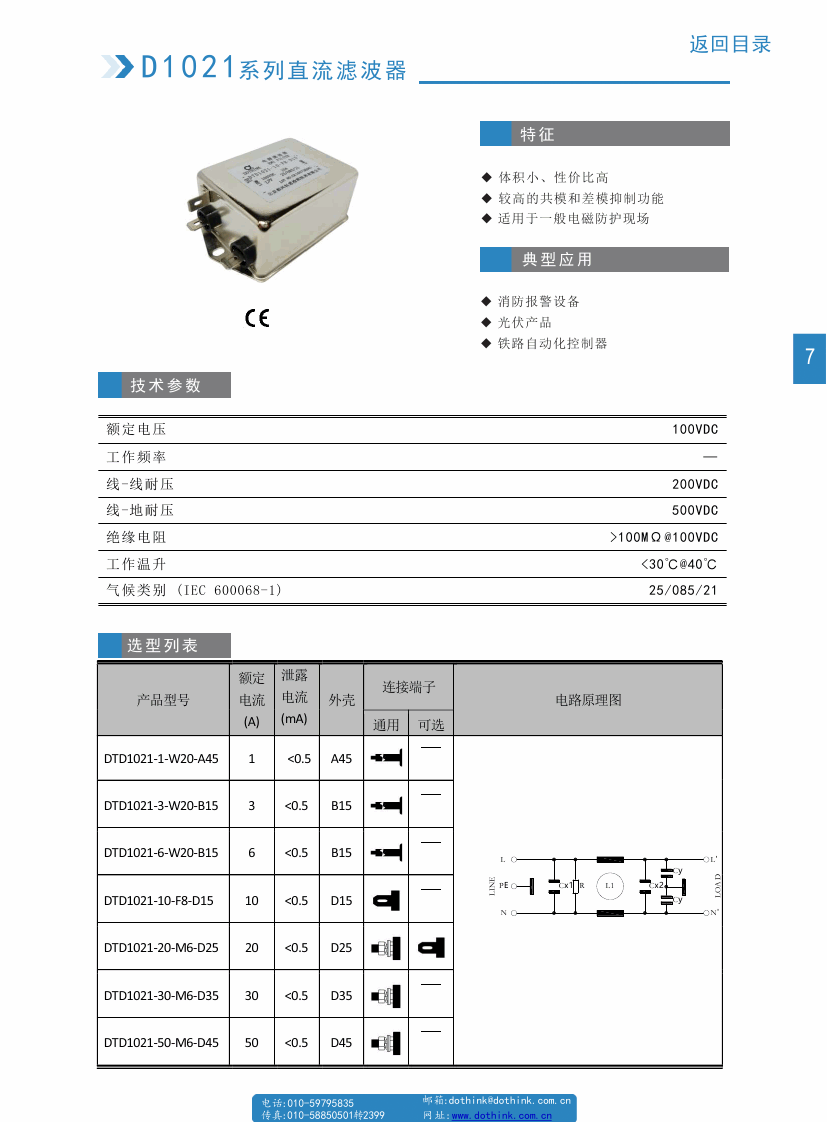 型號:DTD1021系列直流電源濾波器