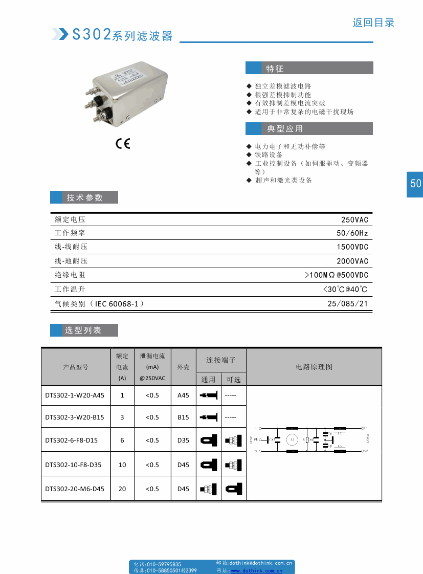 DTS302系列交流電源濾波器